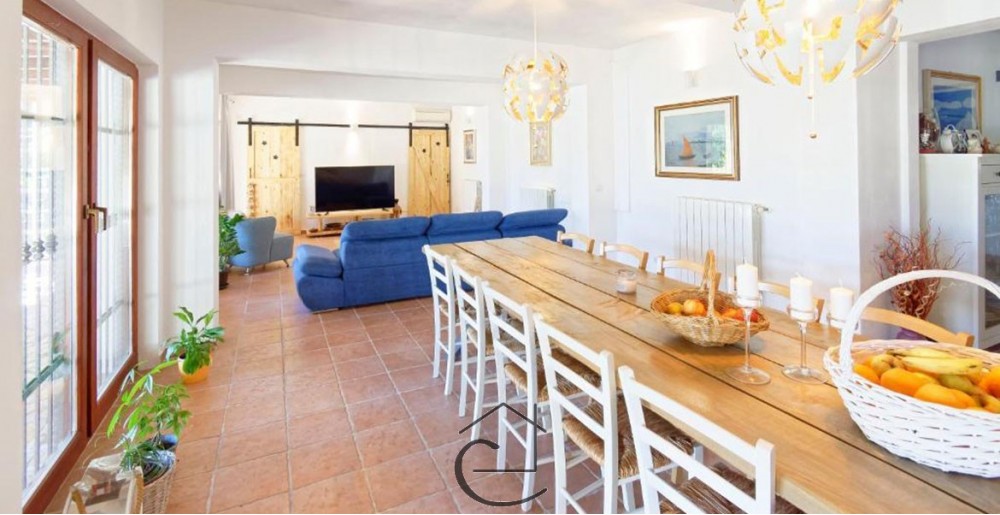 The house has an area of 362 m2, was renovated in 2018 and contains 6 bedrooms, 7 bathrooms, a large living room and a kitchen, and there is a spacious terrace on the first floor. On the large garden of 3800 m2 there are as many as two swimming pools, one small and one large, a bar and a gazebo for the sun.
